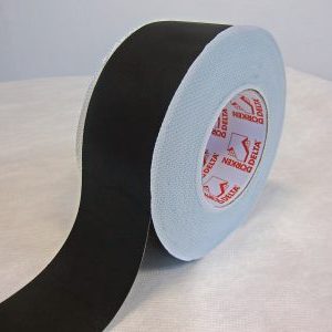 Zwarte, UV-bestendige kleefband.