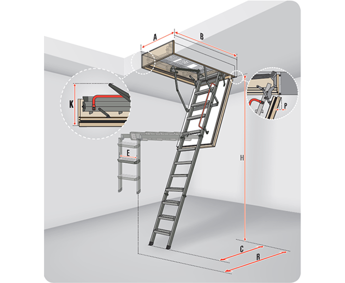 De LMS Komfort zoldertrap is een 3-delige opvouwbare trap met dennenhouten kast, metalen ladder en thermisch ge?soleerd luik.