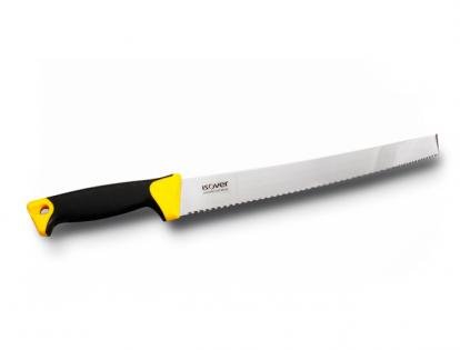 Mes met enkelzijdig lemmet, speciaal ontworpen voor het versnijden van minerale wol van het merk ISOVER. Roestvrij stalen lemmet met een lengte van 29,7 cm.